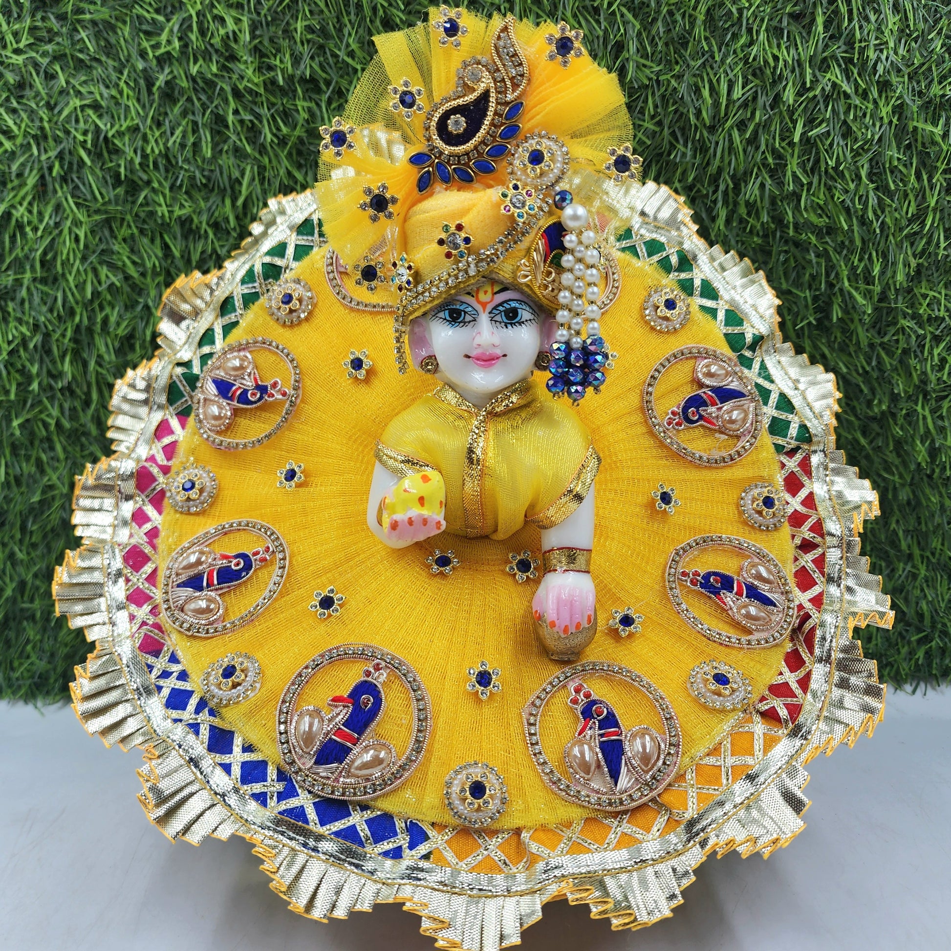 Beautiful Yellow Mor Heavy Dress for Laddu Gopal Ji