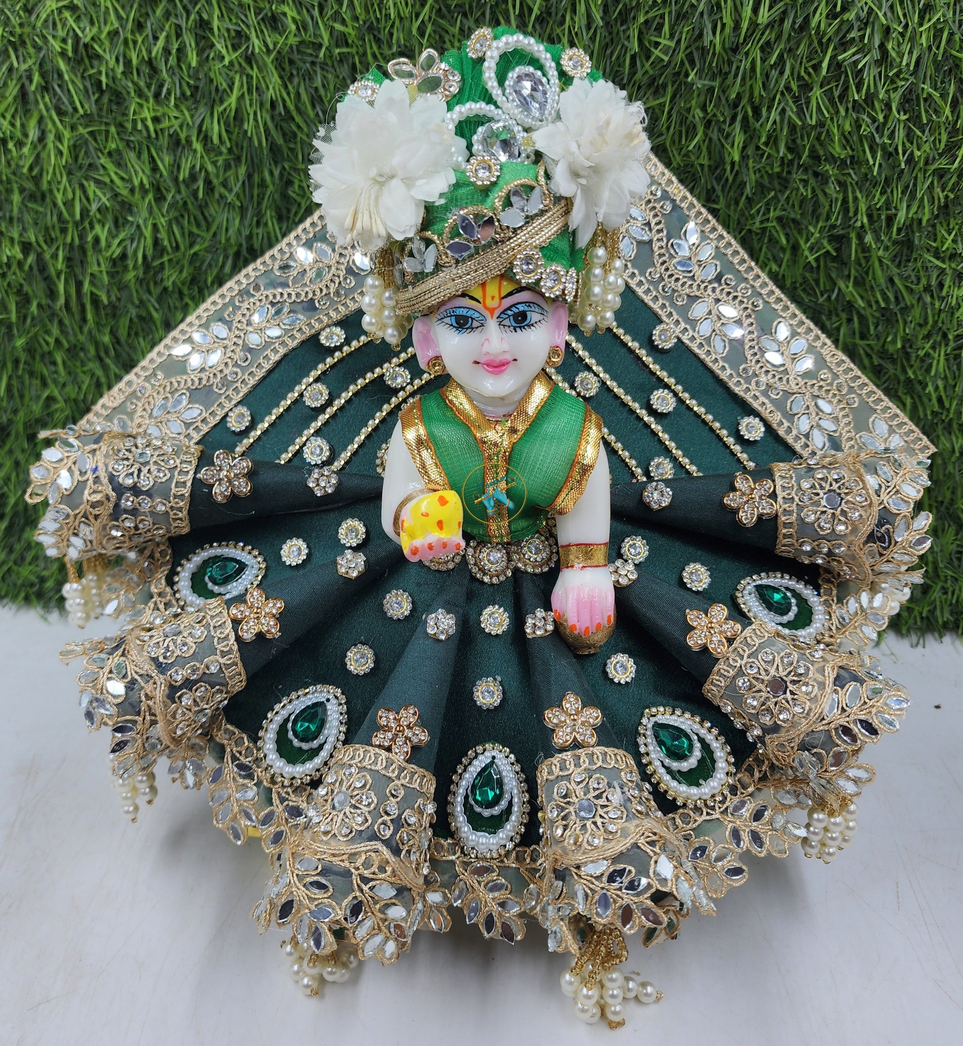 Darkgreen Festive Special Heavy Dress for Laddu Gopal Ji