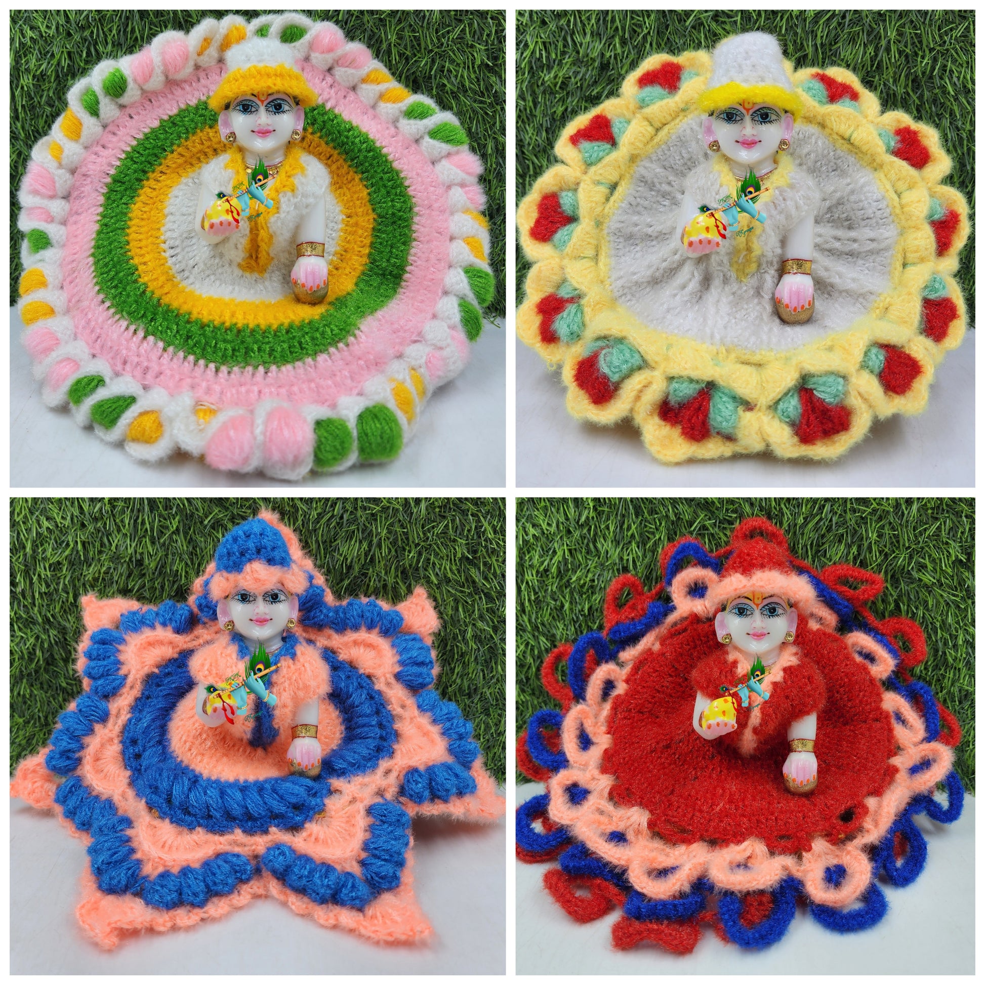 Adorn your beloved Laddu Gopal Ji with our premium Woolen Dress Combo Pack of 4, designed to keep your deity warm during the winter months while adding a touch of elegance. Each dress is crafted from soft, high-quality wool, ensuring comfort and warmth for your Kanha Ji. The combo includes four intricately designed dresses in vibrant colors, perfect for daily puja or festive occasions. Let your Laddu Gopal Ji shine in style and devotion with these beautiful woolen outfits!