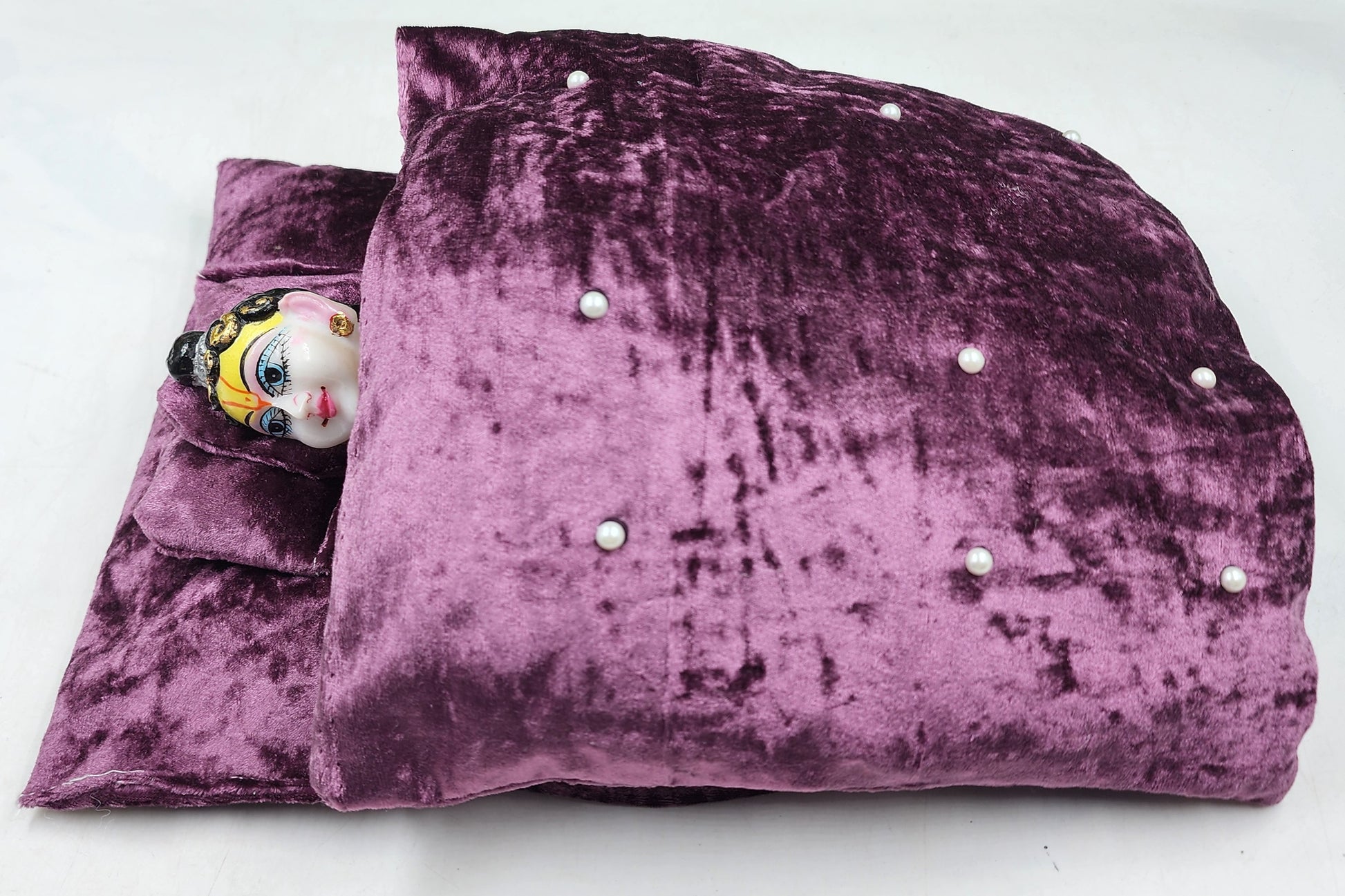 Keep your beloved Laddu Gopal warm and comfortable this winter with our special bister set. This set includes a soft, plush mattress, a cozy pillow, and a beautifully crafted quilt, each designed to provide warmth and a divine touch. Made with high-quality fabrics in rich, vibrant colors, it offers both comfort and elegance for your deity. This winter, give Laddu Gopal the gift of warmth and ensure a peaceful, cozy rest every night.